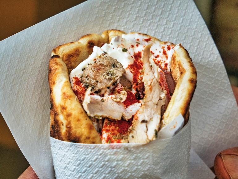 Those who truly know Chania will tell you that the best souvlaki is found at Oasis, a staple since 1966. The faithful keep coming back for the excellent souvlaki and gyros with yoghurt, onion, tomato and parsley.If you want to see how local cheese is produced, there is no need to trek to the highlands. A phone call to Schetaki Family, the last cheese factory in town, will suffice. Here, you are treated to an authentic breakfast of Staka with thyme honey, butter, thick yoghurt and Sfakian rusks. A life-force in the city centre is the cross-shaped central market. Designed and constructed in 1911, the area draws many tourists. However, don’t be dissuaded; this is where locals come to purchase fresh fish and Kostakis cheeses such as graviera made from free-range sheep, Mochlakis graviera infused with herbs and hard cheese varieties, and Valyrakis white cheese. At the market stalls of Nikos Karkanis, you can sample Tsikoudia (made by Nikos himself) with strawberry or rose, and peruse thousands of varieties of Cretan olive oil.