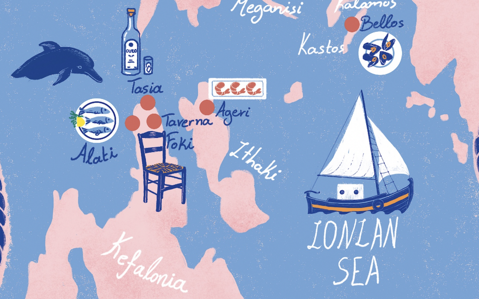 Το λιμάνι του Φισκάρδου, στην Κεφαλονιά, έχει κάθε χρόνο την τιμητική του, καθώς εκεί οι έμπειροι «θαλασσοπόροι» αναζητούν τη γευστική αστακομακαρονάδα που ετοιμάζει η Τασία (1) στο ομώνυμο εστιατόριο. Ο Tom Hanks και ο Steven Spielberg ήταν από τους πρώτους διεθνείς πελάτες της που κάθε καλοκαίρι έδεναν κυριολεκτικά μπροστά στο εστιατόριό της. Δίπλα ακριβώς από το Φισκάρδο, βρίσκεται η παραλία Φώκι, που πήρε το όνομά της από τις φώκιες Μονάχους μονάχους, οι οποίες συχνά επιλέγουν τα γαλαζοπράσινα νερά του κόλπου για μια σύντομη επίσκεψη. Εκεί, θα βρείτε τον Μάκη και τη Μαρία, οι οποίοι θα σας υποδεχτούν στην ταβέρνα Foki (2) με δικά τους κρεατικά και σπεσιαλιτέ τους τα γεμιστά και τον μουσακά. Ένα εξαιρετικό ηλιοβασίλεμα όσο κολυμπάτε στα πεντακάθαρα νερά της Κεφαλονιάς μπορείτε να απολαύσετε και στο Alati (3), στην περιοχή Αλατιές. Στο λιμάνι Φρίκες της βόρειας Ιθάκης, επισκεφτείτε το εστιατόριο Αγέρι (4), για να δοκιμάσετε σύγχρονες παραλλαγές παραδοσιακών ελληνικών πιάτων, ενώ στο Μεγανήσι, στο Βαθύ, στην ψαροταβέρνα Ερρίκος (5), θα μαγευτείτε από το μυδοπίλαφο και το μπουρδέτο του!
