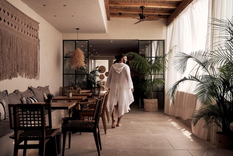 Έχοντας σχεδιαστεί σε συνεργασία με τους GNB Architects, το Amyth of Mykonos συνδυάζει διακόσμηση εμπνευσμένη από το Αιγαίο και μια ευχάριστη μποέμ ατμόσφαιρα, ενώ αποτυπώνει την ξεχωριστή ομορφιά της Μυκόνου.