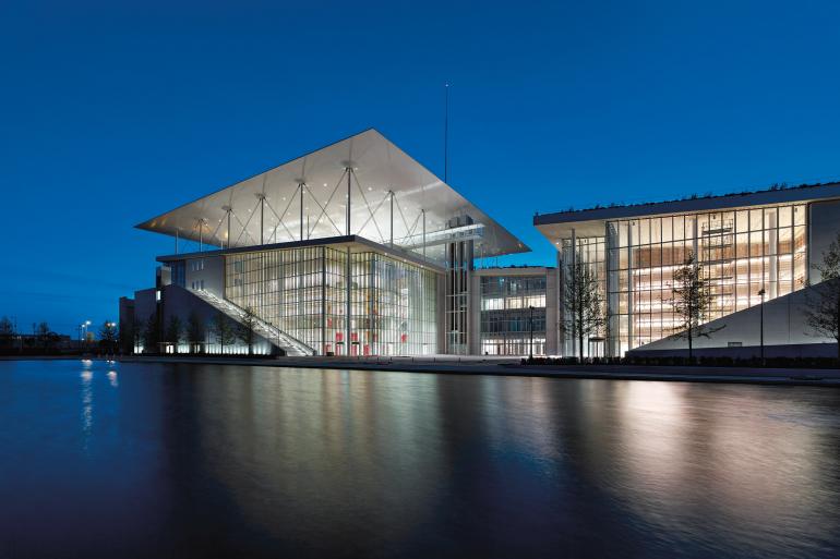 After ten years of construction costing 630 million euros, the press coined it The New Parthenon. The Stavros Niarchos Foundation Cultural Centre is a living, breathing landmark, a venue for culture, education, entertainment and sports. It embodies Athens –its spirit, aesthetics and history– with modern sensibilities. The three-pronged concept for the SNFCC began in 2004 when the Stavros Niarchos Foundation combined the relocation of the National Opera House with the creation of a new National Library and sprawling public park. The Greek state conceded land in the Faliro delta, home to the decommissioned Hippodrome (race track). Architect Renzo Piano did the rest, erecting an artificial, gently-sloping hill beneath which two cavernous glass structures reside. The results are striking: 210 acres of environmentally friendly, sustainable greenery perched atop expansive glass arenas where sunlight and air flow freely, open to the public.