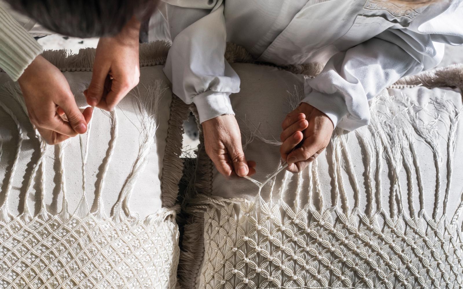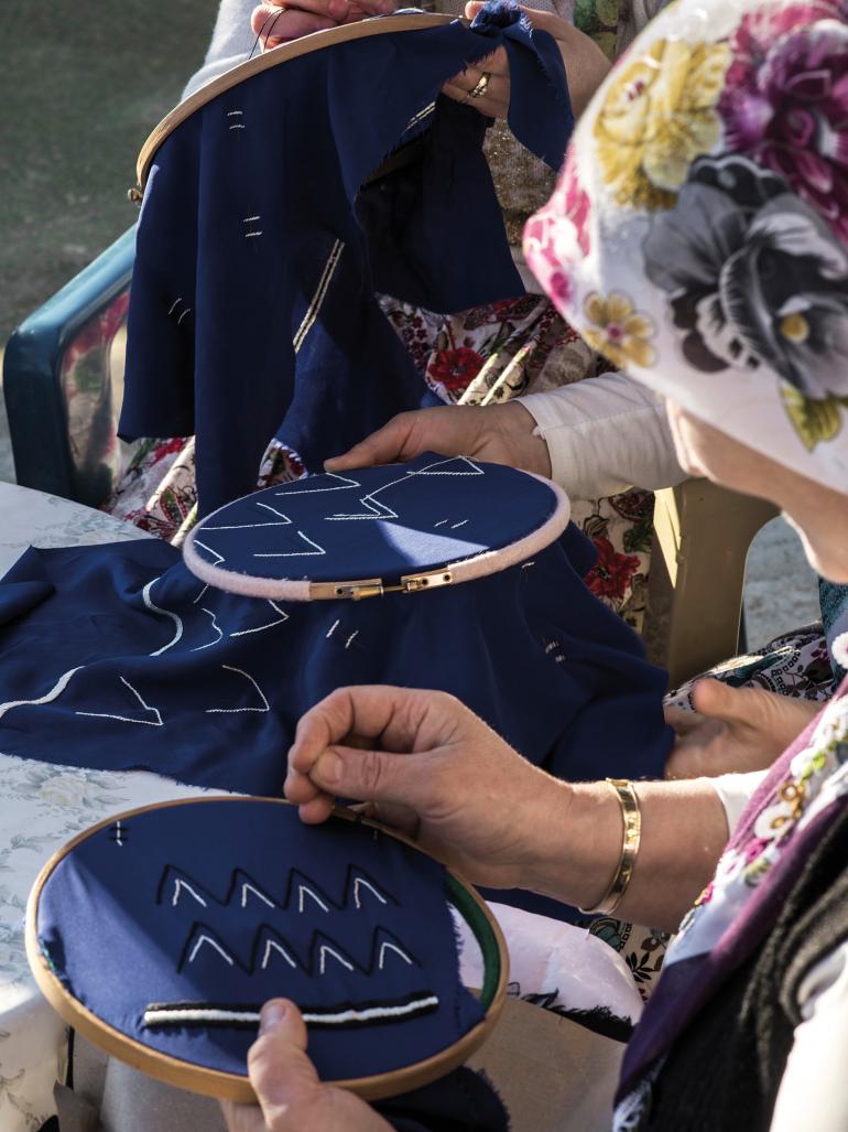 Something incredible – Sarah Mower, the fashion world’s leading journalist, called me and said, “I want to come and make a documentary about you.” I could not believe my ears! Her words hold so much weight. We spent more than a week together on a trip to Soufli and Argos. I remember taking Sarah to meet a family in Pomakochoria, one of our embroiderers. She was with her children, one on her leg, the other asking for food. Smiling, she showed us the knitting method she uses. I could tell that Sarah was emotional. She said, “This thing you do, helping these people by keeping their art alive, is important.”