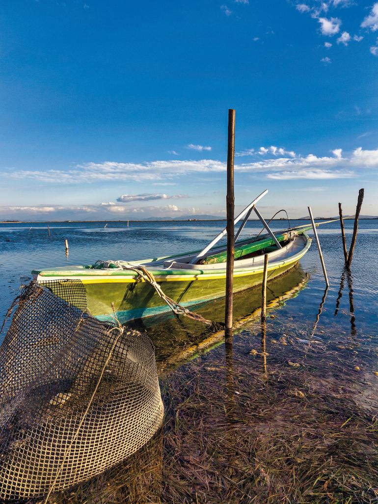 From March to June, the lagoon is home to fry and larger fish until they swim back to open water at the end of summer: sea bream, mullet, bass and lings are fished until July. In September, the golden season of the mullet begins. The roe from Baffa (females) is the gold of the lagoon. A valuable Greek PDO with roots going back to ancient Egypt, the roe is preserved in butter and sealed in wax for the discerning. Full of nutritional value, it is food for kings.