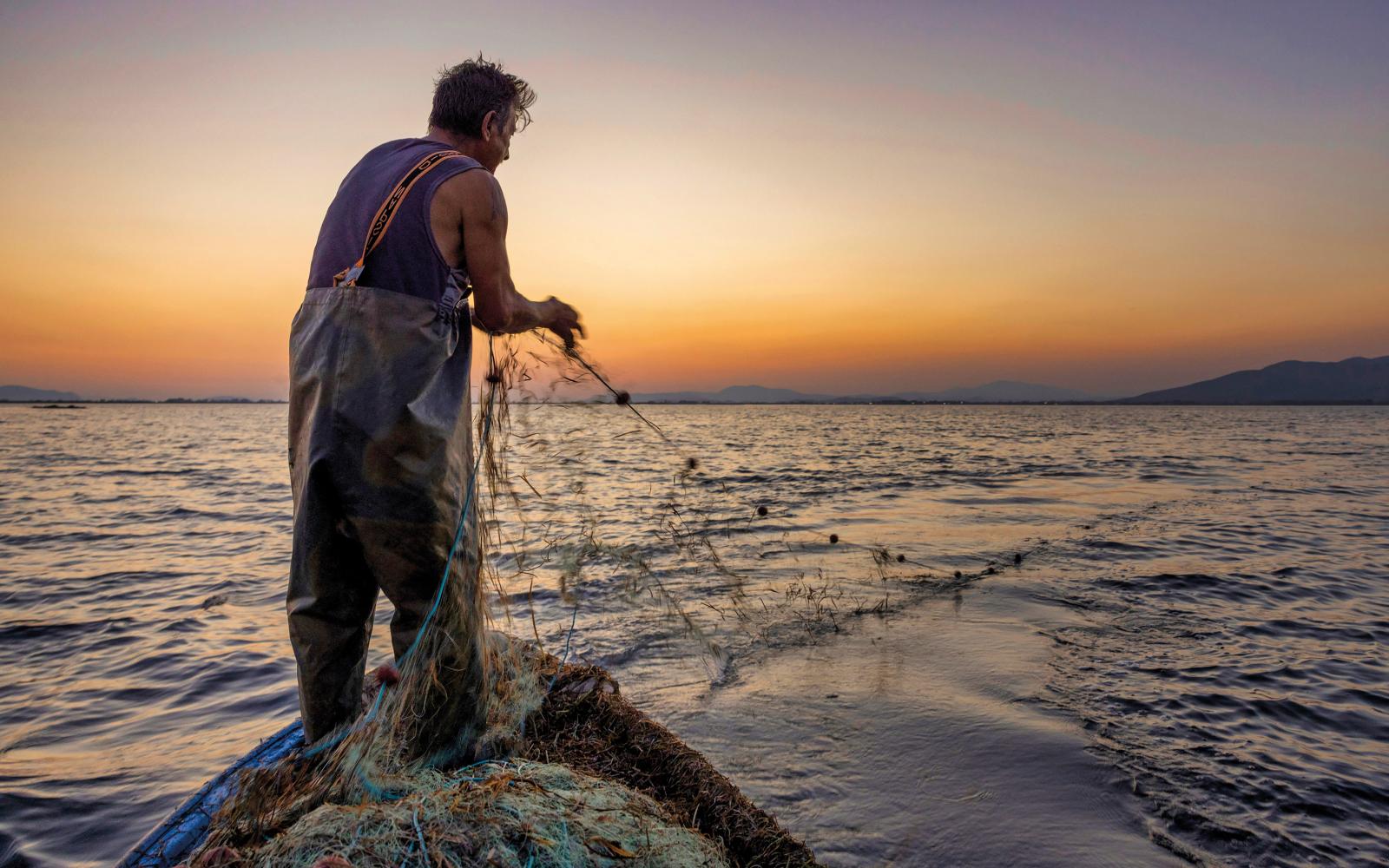 The lagoon of Messolonghi is paradise, if not a bit eerie: like an autumnal sunrise. Beneath the silver-blue silhouette of the mountains lies a melancholy, almost leaden, still life of water interrupted only by the splash of rare birds in this unique ecosystem. Here, everything belies describing – a bracket of marine life kilometres from the Aegean Sea.