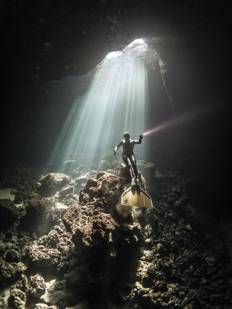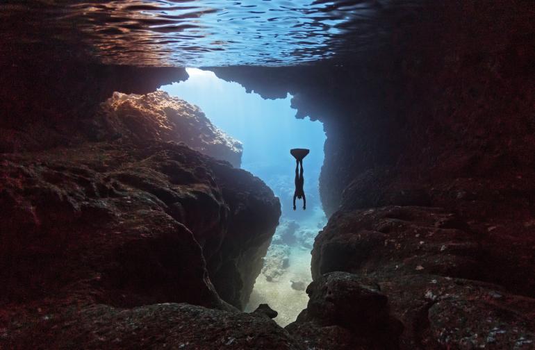 For Stefanos, freediving became the ultimate expression of freedom and exploration. Unburdened by scuba equipment, his sole purpose was immortalising the sea’s treasures through photography, later sharing his captures with the world. Soon, his love for the sea evolved into a passion for freediving and photography in locations few would dare venture on a single breath. He accumulated countless dives, day and night, capturing images in sea caves and shipwrecks yet unexplored where light could not reach.