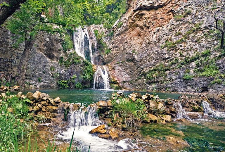 Be sure to stop at the watermill to learn more about the old milling process used in the past. Discover the magnificent waterfall that divides in two, a part of which reaches a height of 6 metres. The water cascading over the rocks spills into two deep, natural pools that are ideal for swimming in summer.