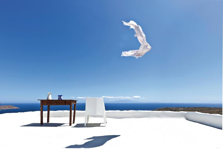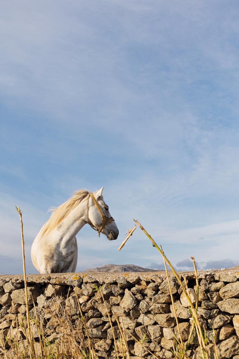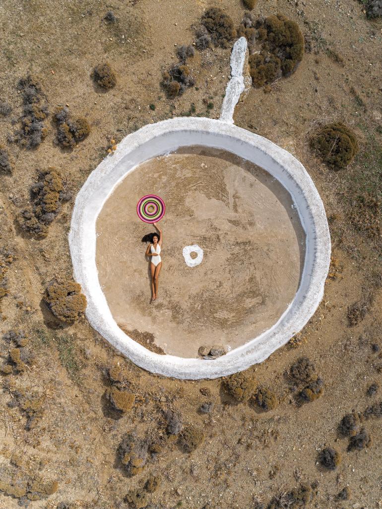 Through my book, I have tried to reveal these two faces and the charm of combining them. I like to photograph in summer because I am especially interested in the light, the sharp shadows and the airy feeling. I capture whatever suits my aesthetics in my photos. The best time to photograph Mykonos is at the end of May, the beginning of June and the end of August. My favourite places are Maou, Mirsini, certain corners and neighbourhoods of Chora, and the wild landscape at Agrari. Another favourite is the cinema in Chora. If you want to see the cosmopolitan face of Mykonos, you must go to Alemagou, Scorpios and Nammos. If you would like to experience the traditional side of the island, visit Ano Mera and Maou and pass by Rizes. In this book, people will see the Mykonos I live in, the one I want to remember and that I would ideally like today’s visitors to get to know and love.