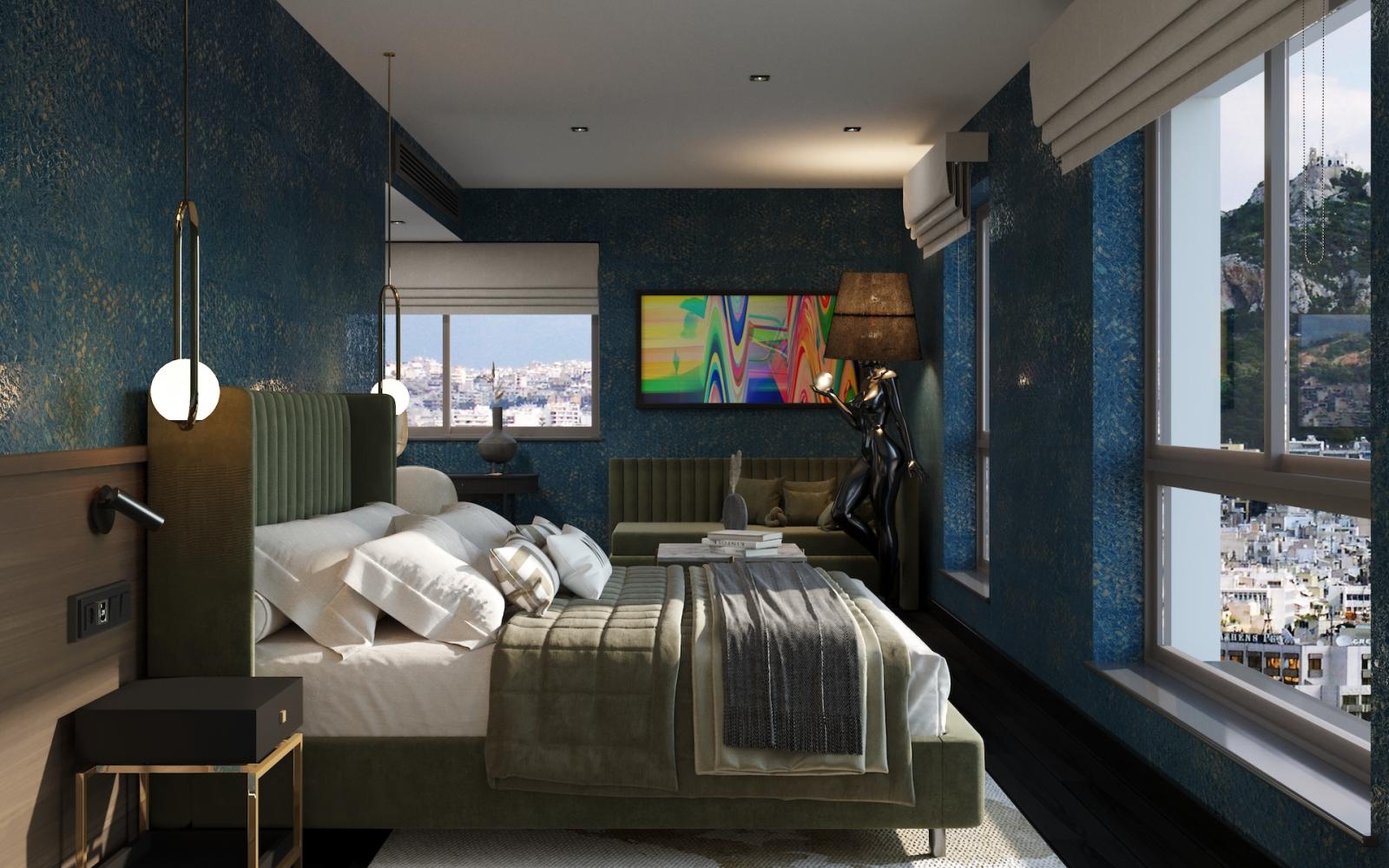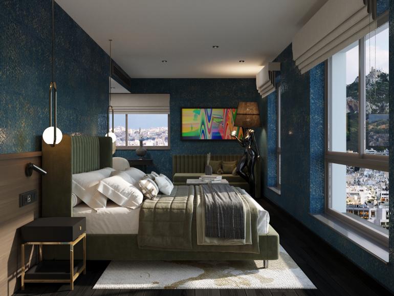 The hotel boasts 212 luxurious bedrooms and suites. The hotel offers conference facilities, co-working areas, a main restaurant, a Bistrot, Spa, Gym, Executive/Business lounge and a rooftop restaurant-bar and pool with breath-taking views to the Acropolis, the Lycabettus mountain, and the city of Athens.